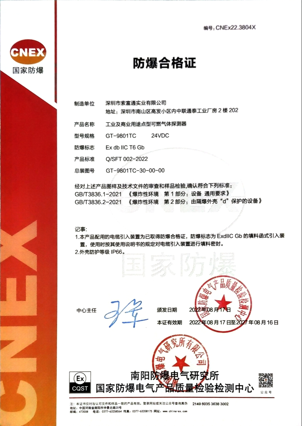 GT-9801TC防爆合格證