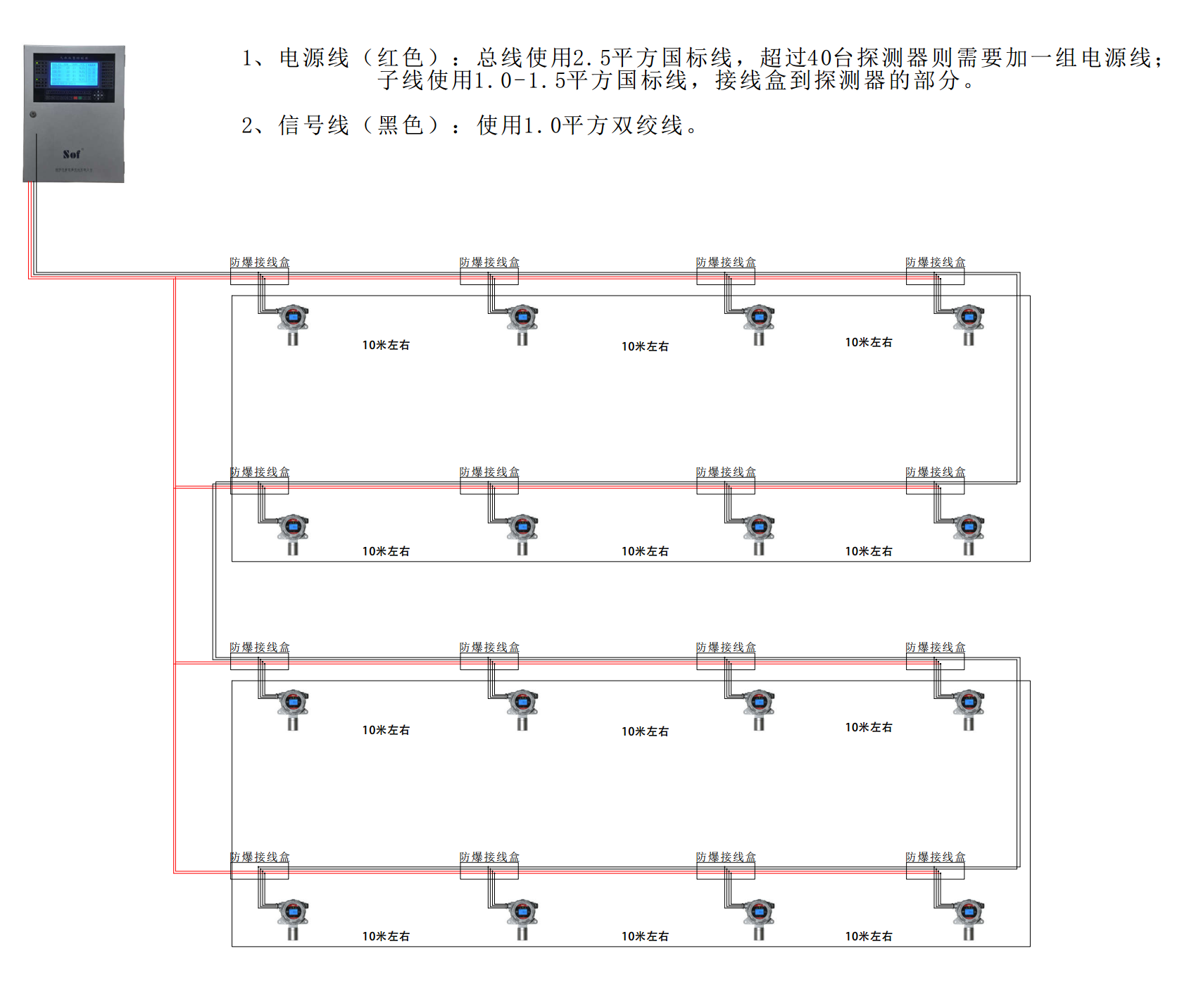 3.1、本系統(tǒng)由1臺氣體報警控制器、1-250臺探測器組成(含外控器)。需要的時